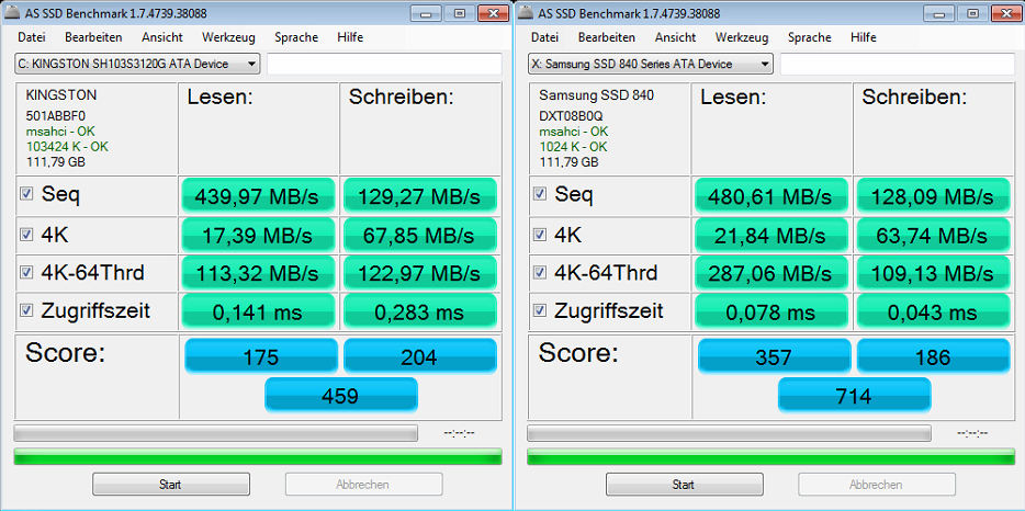 Systemoptimierung und Einstellungen wurde soweit alles gemacht (superfetch, defrag, ahci, etc pp). Für die Samsung Platte habe ich außerdem das Over Provisioning oder wie sich das schreibt, aktiviert über die Samsung Magican Software. Leider habe ich bisher keine Software gefunden, welche das für die Kingston Hyper X (OS SSD) auch macht.