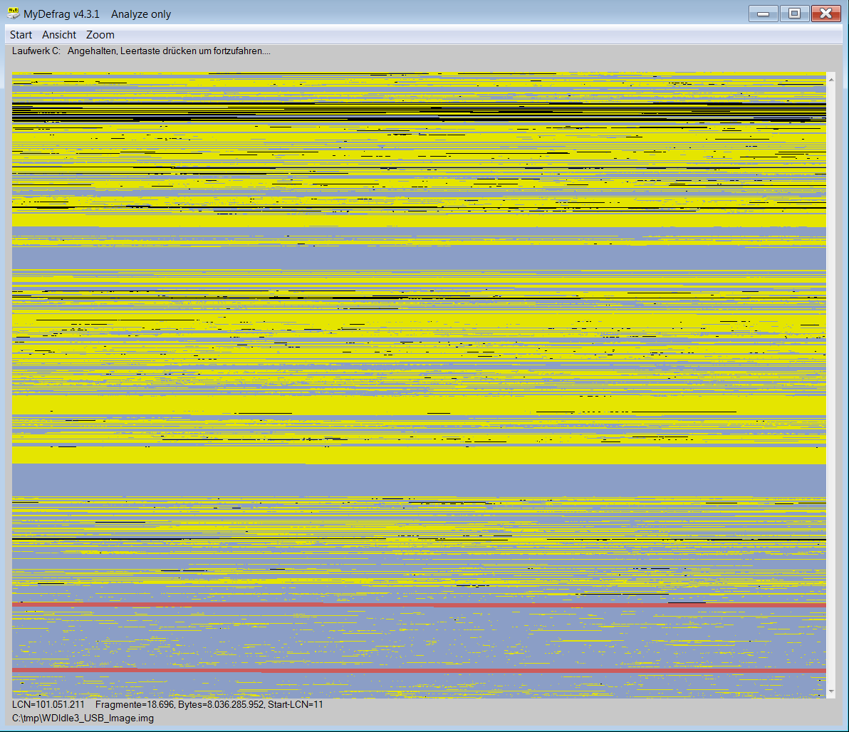 Man muss aber eine cmd.exe "Als Adminitrator" starten und dort schon vorher contig -a C:\AS-SSD-TEST42\test.bin eingeben, sonst schafft man das während des Tests von AS-SSD u.U. gar nicht! Also vorbereiten, den Benchmark von AS-SSD starten, dann sofort zur cmd.exe wechseln und Enter drücken um den Befehl loszuschicken.C:\Sysinternals>contig -a C:\AS-SSD-TEST42\test.bin