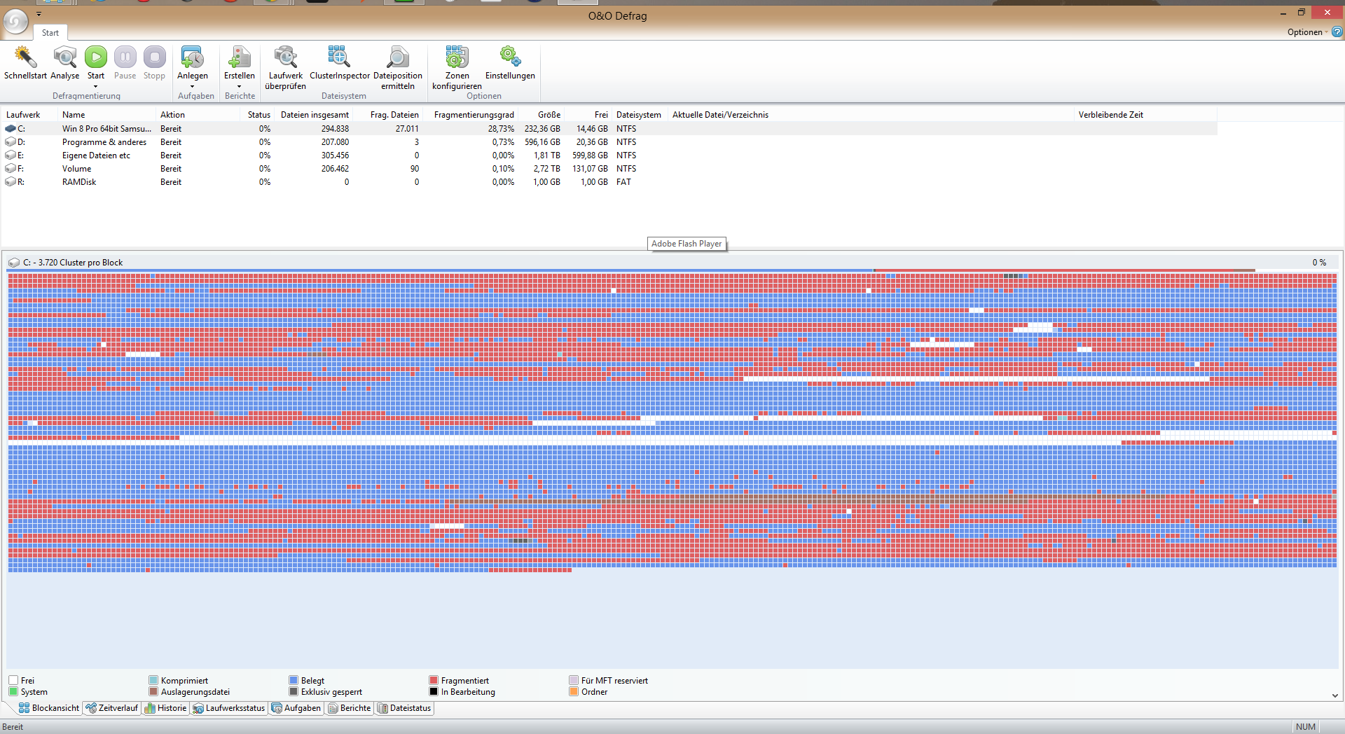 Eben nicht, das ist ein weit verbreiteter Irrglaube von Leute die keinerlei Ahnung von einem Filesystem haben und dieser daher konsequent ignorieren. Das Defragmentieren schadet einer SSD nicht, es kostet vielleicht einen oder auch ein paar P/E Zyklen, aber die NAND dieser SSD haben gerade erst 57 P/E Zyklen auf dem Buckel, 1000 werden garantiert und über 3000 wurden in allen Endurance Test erreicht.Radde schrieb:Fragmentierung ist bei einer SSD aber dsoch völlig egal (zumindest beim Lesen). Fragmentieren bringt bei einer SSD überhaupt nichts und schadet ihr sogar!
