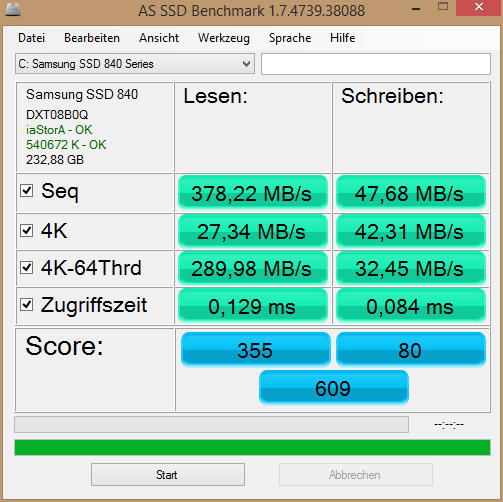Das stimmt, aber dazu kommt eben der Effekt der kurzen Zugriffe, wenn das Filesystem stark fragmentiert ist. Das betrifft natürlich nur die später und vor allem die neu geschrieben Dateien, die am Anfang einmal dort abgelegte sind ja alle nur in einen Fragment geschrieben worden, sofern sie nicht größer geworden sind.Radde schrieb:1GB ist für eine SSD zu wenig, damit die internen Verwaltungsvorgänge ordentlich funktionieren.