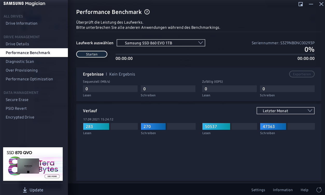 plus ASSSD u. Crystal Disk Info/CD Mark natürlich, immer auch herstellerunabhängige Tools zum Vergleich heranziehen