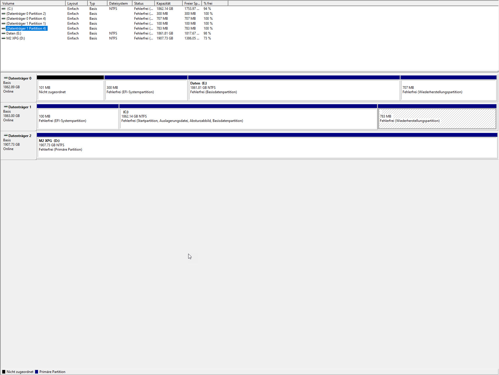 Ich habe jedoch vom Vorgänger-PC noch eine 1TB Samsung 860 M.2 verbaut. Diese taucht aber nirgendswo auf..