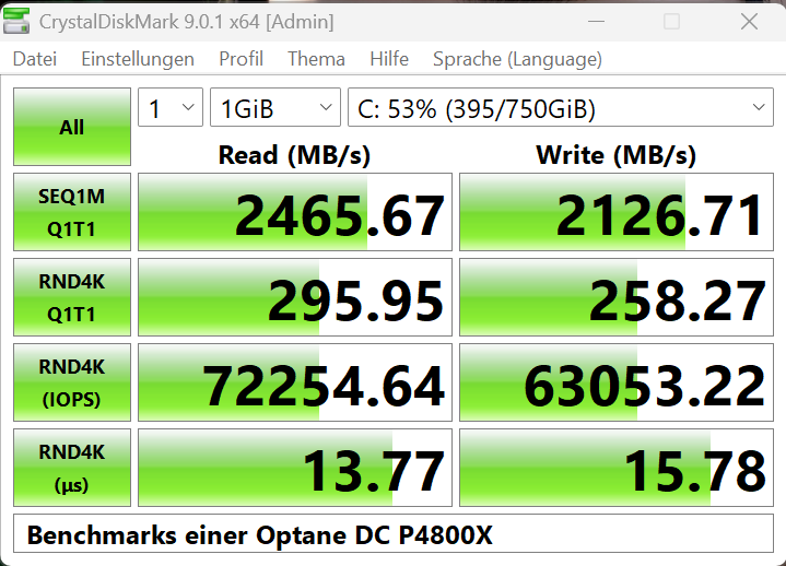 Eine SATA SSD habe ich nicht mehr zum Vergleich parat, vielleicht hole ich diese Benchmarks noch nach.