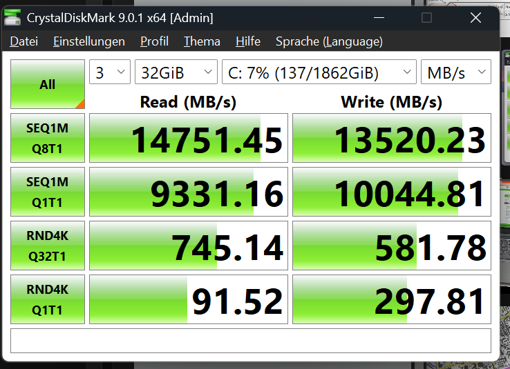 Über die T705 ärgere ich mich ein wenig, das ist aber auch eine ältere SSD im System, die wollte ich testen, weil ich ein PCIe 5.0 Board habe.