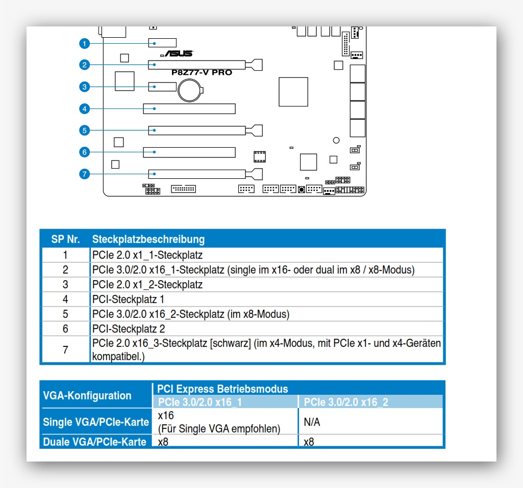 Mein Baord hat, wie auf dem Bild im Anhang zu sehen, diese PCIe Schnittstellen.