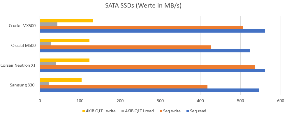 Für die besser Skalierung nochmals die SATA SSDs gesondert: