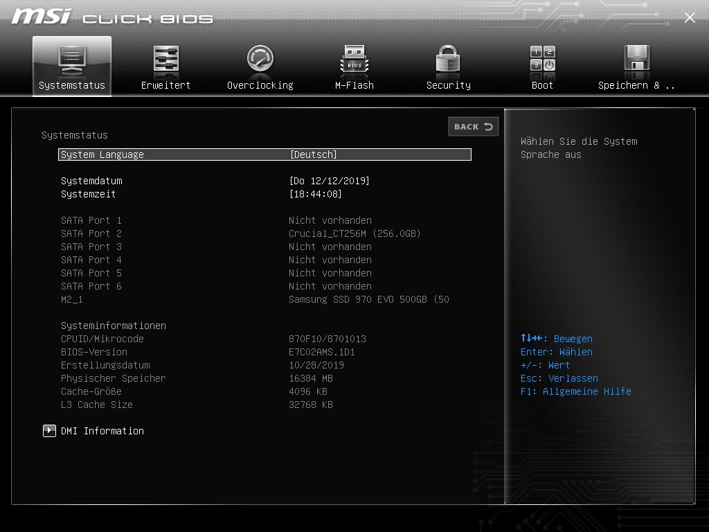 MSI B450 Tomahawk (neueste BIOS-Version, allerdings Click BIOS LITE)