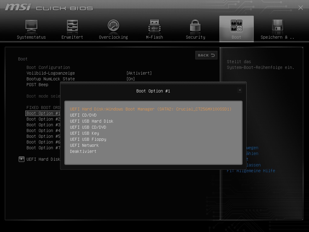 Die M.2. wird in diesem Modus allerdings sowohl in der Übersicht als auch in der Bootreihenfolge angezeigt.