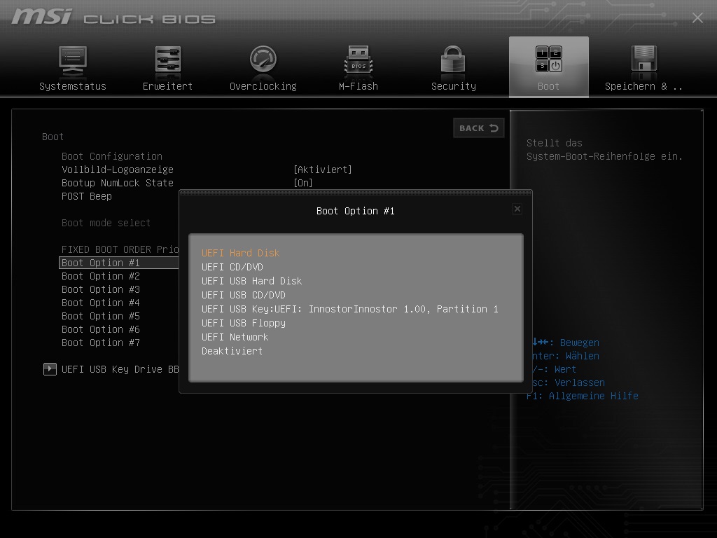 Wenn ich das BIOS auf Legacy+Uefi stelle kommt die Fehlermeldung "reboot and select proper device service".