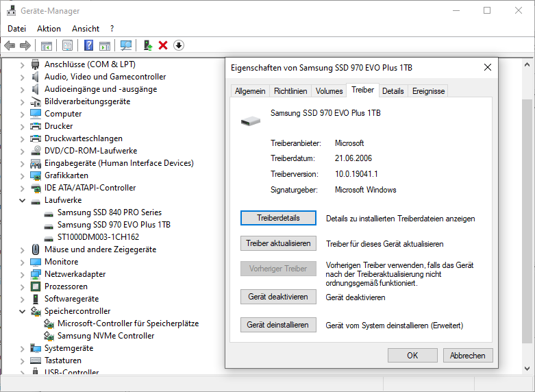 Den NVMe Treiber von Samsung habe ich ebenfalls bereits installiert (habe gelesen es wäre ratsam vorher diesen zu installieren, da sonst Windows oft den eigenen Treiber nutze welcher den Schreib-Cache der SSD umgeht).