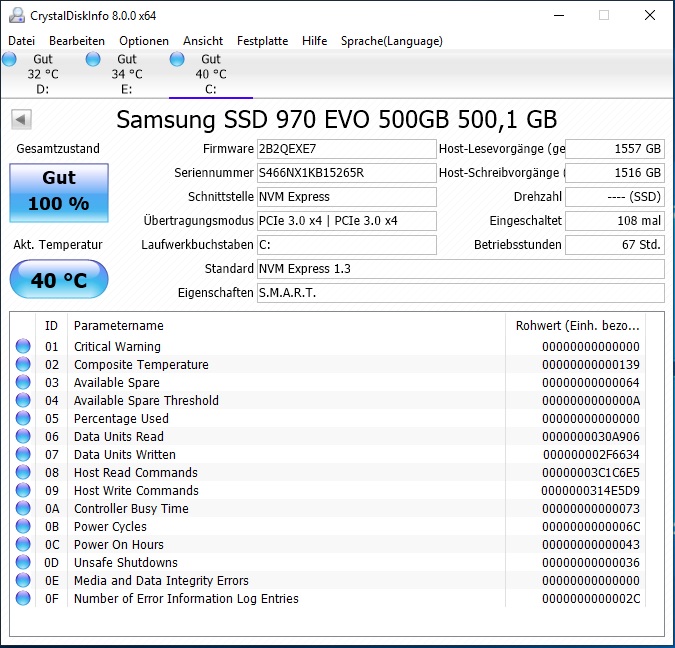 Updates sind alle auf dem neusten stand und die SSD läuft auch mit dem Samsung Treiber.