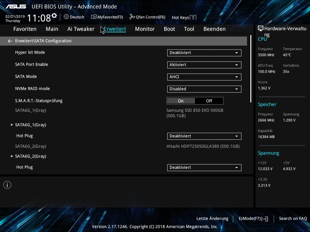 - im Bios unter Erweitert kannst du weiter unten kein M2 Menü aufklappen? Bei meinen Intel Asus Board kann ich das. edit: Habe mir gerade bei uns extra noch einen ähnlichen Rechner gesucht und bin da rein gegangen