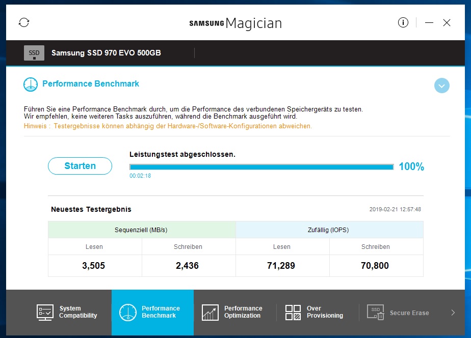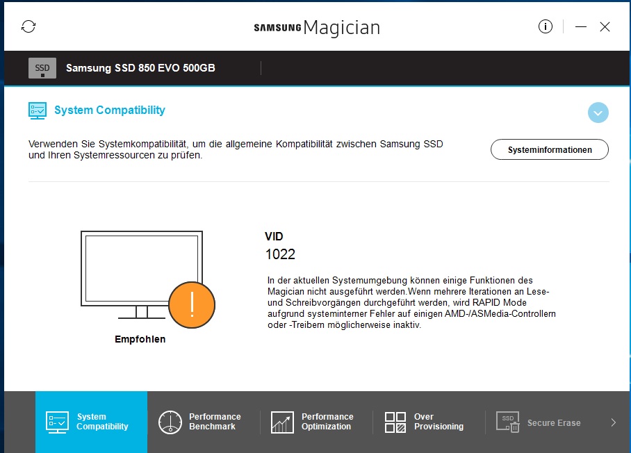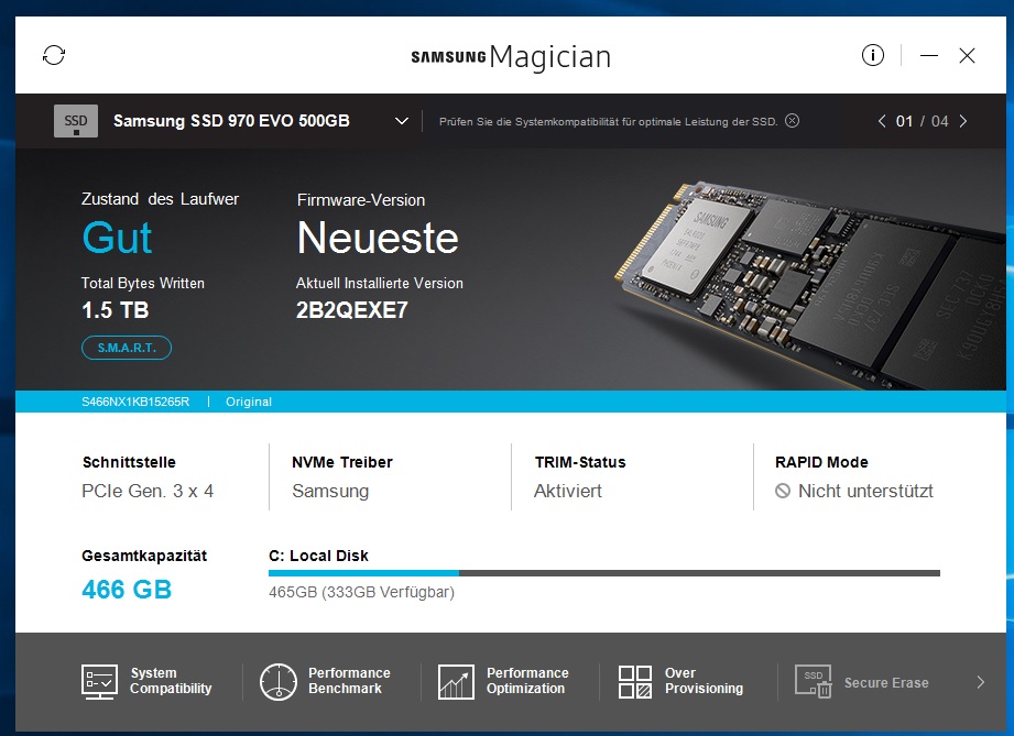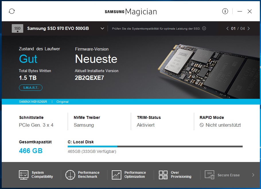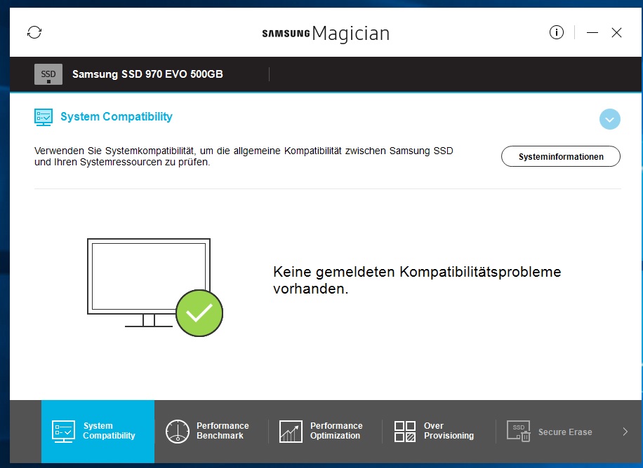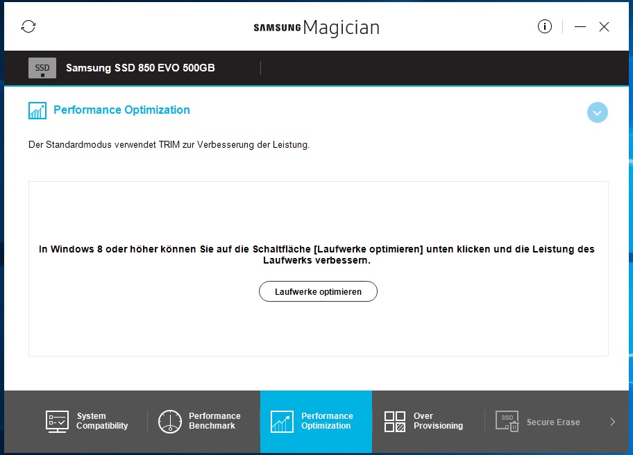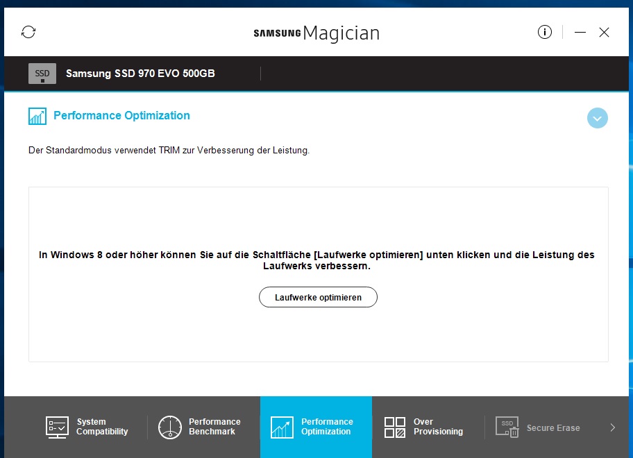 - Bilder von den im Samsung Magician unteren Menüs wären auf noch gut. Speziell System Comp. und Perfomance Optim.