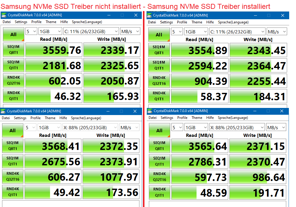 ich habe zwei Samsung Evo 970 Pro 256GB NVMe verbaut und diese werden extem heiß bei Belastung.