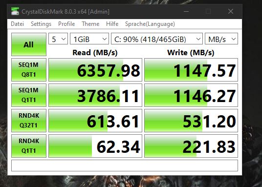 Hi leute, ich habe schon mehrfach gelesen das bei vielen die 980pro massive probleme hat, und schreibraten von 1000mb ca aufweist. Das gleiche Problem ist bei mir. Neueste Firmware ist drauf. Asus B550 f und ich komme auf schreibraten von 1100mb und lesen bei 6300mb. was natürlich weit weg ist von der eigentlichen leistung die die ssd aufweisen sollte. Hat hierfür jemand schon eine lösung? geht mir schon massiv auf den senkel das ich schlechtere werte hab als zuvor mit meiner pcie 3 m2. Aber gut war mir eine Leere, ich depp musste ja samsung murks kaufen weil sonst nichts lieferbar war, es war mir eine Lehre.