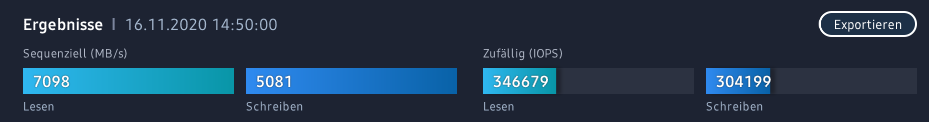 Na jetzt wird es interessant.. Habe als letzte Verzwiflungstat mal die anderen SATA SSDs abgeklemmt und siehe da, schwupps erreiche ich wieder die 5000 MB/s Write...