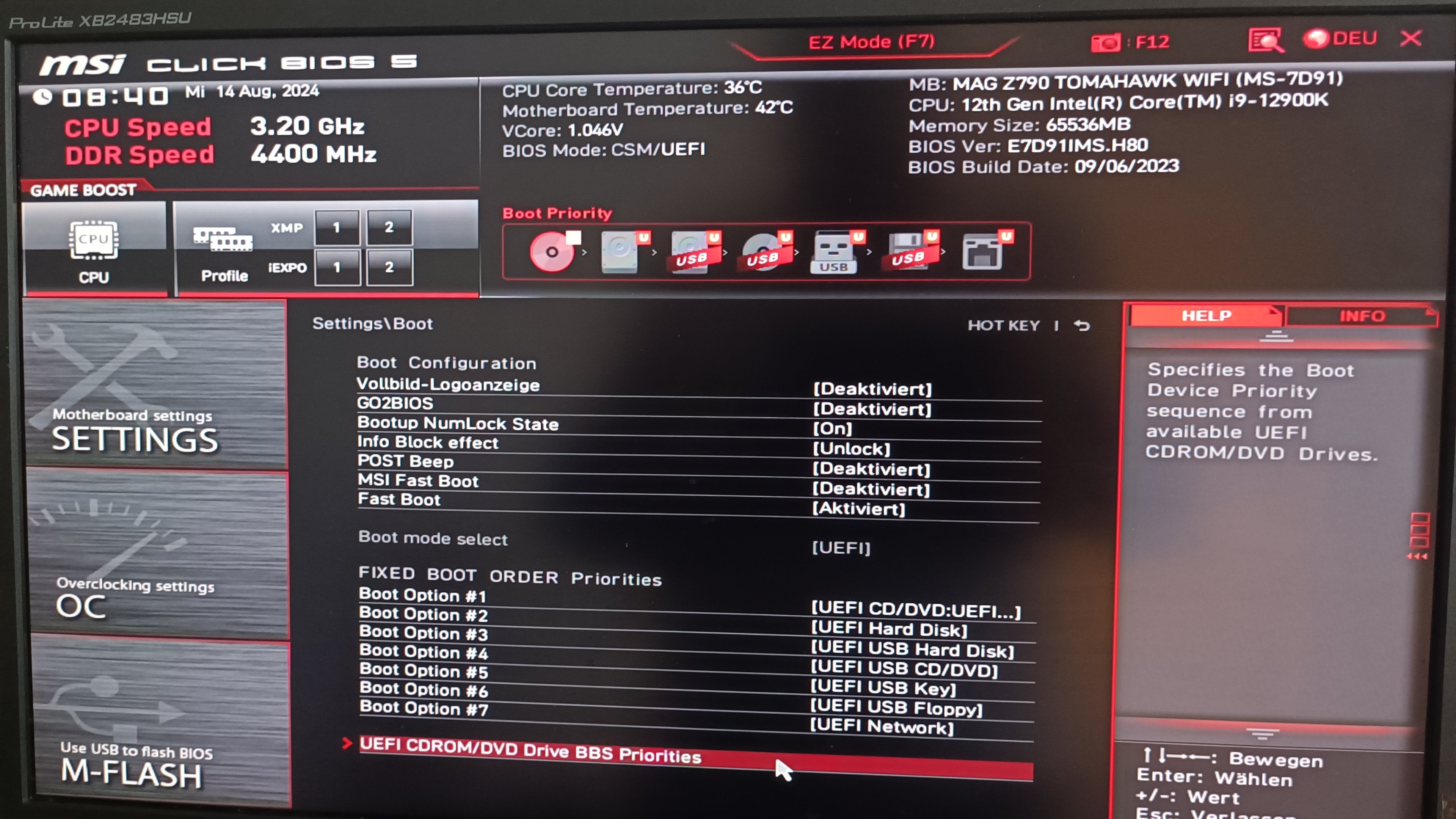 Leider diese erscheint nicht bei BIOS Boot Priority.