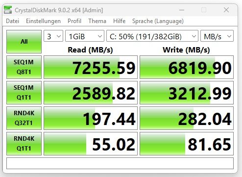 hi, laut daten soll die 1 tb version der Samsung 990 PRO NVMe M.2 SSD 7.450 MB/s Lesen, 6.900 MB/s Schreiben laufen.