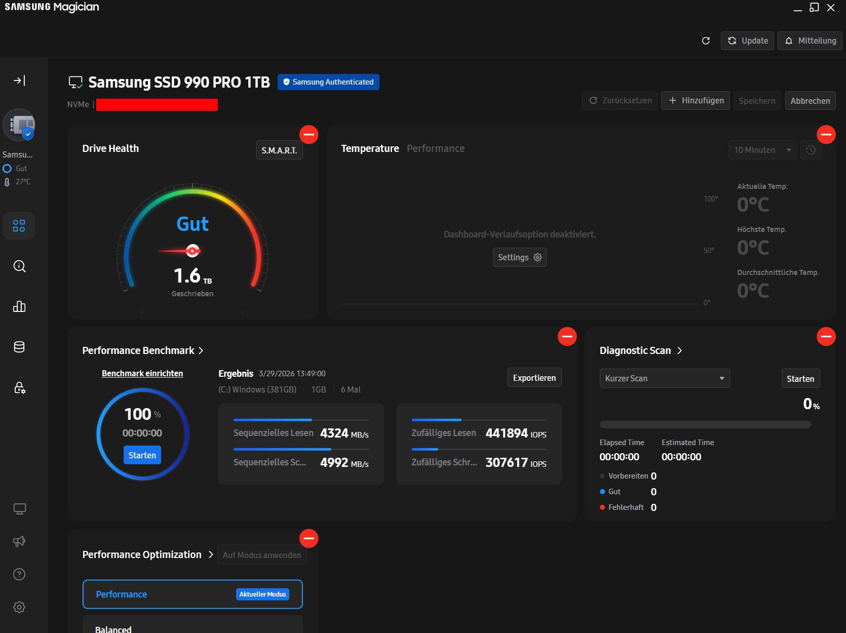 gestern installierte ich die magician software und war enttäuscht weil er mir "nur" 4324 MB/s lesen und 4992 MBs schreiben anzeigt.
