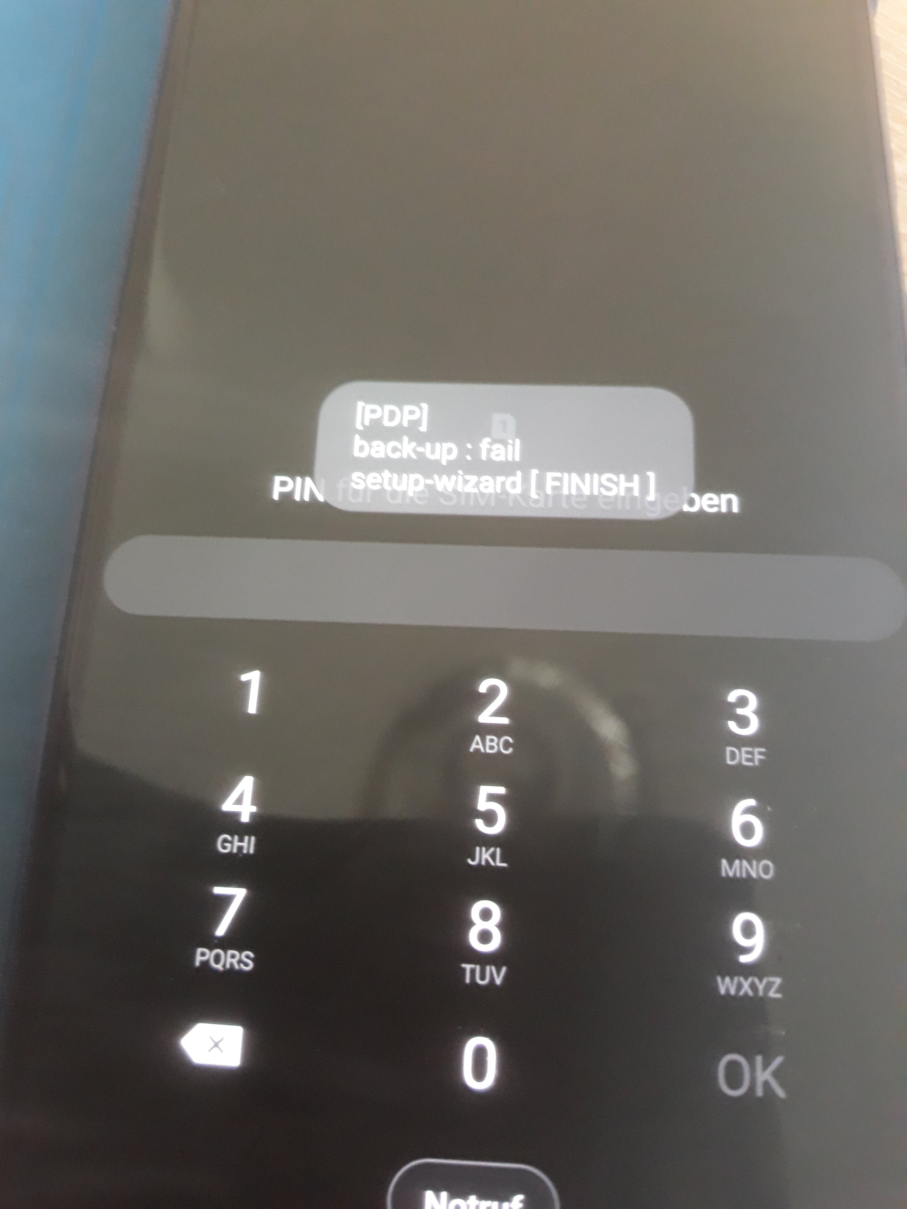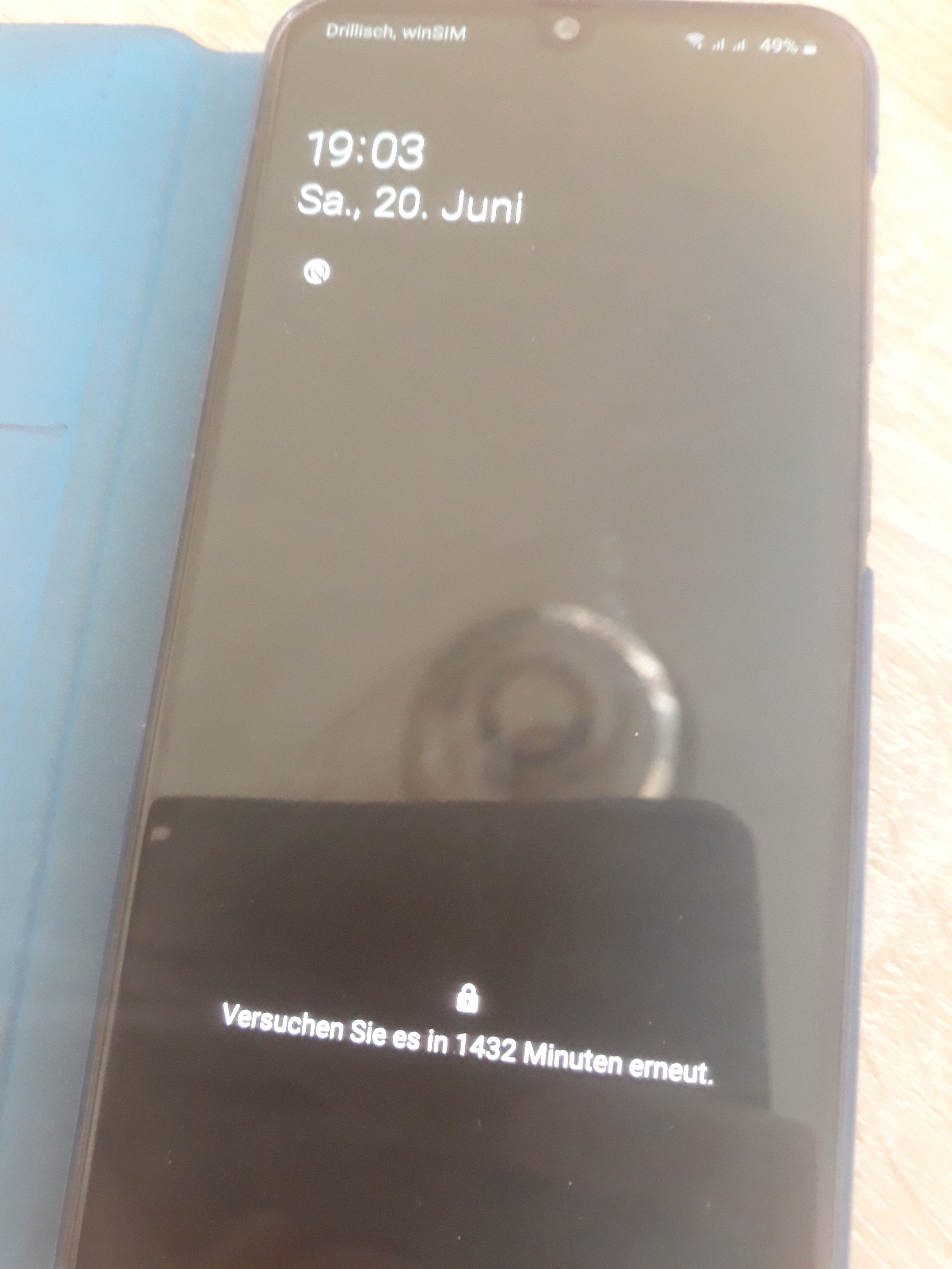 Nun aber ist das A50 abgestürzt, ich habe die PIN eingetippt und die Meldung "Smartphone wird gestartet" stand da, sonst mit einem bewegenden Ladebalken, dieses Mal bewegte der Balken sich nicht. Nach etwas warten habe ich das A50 mit einem langen Drücken auf den Power-Button neu gestartet.