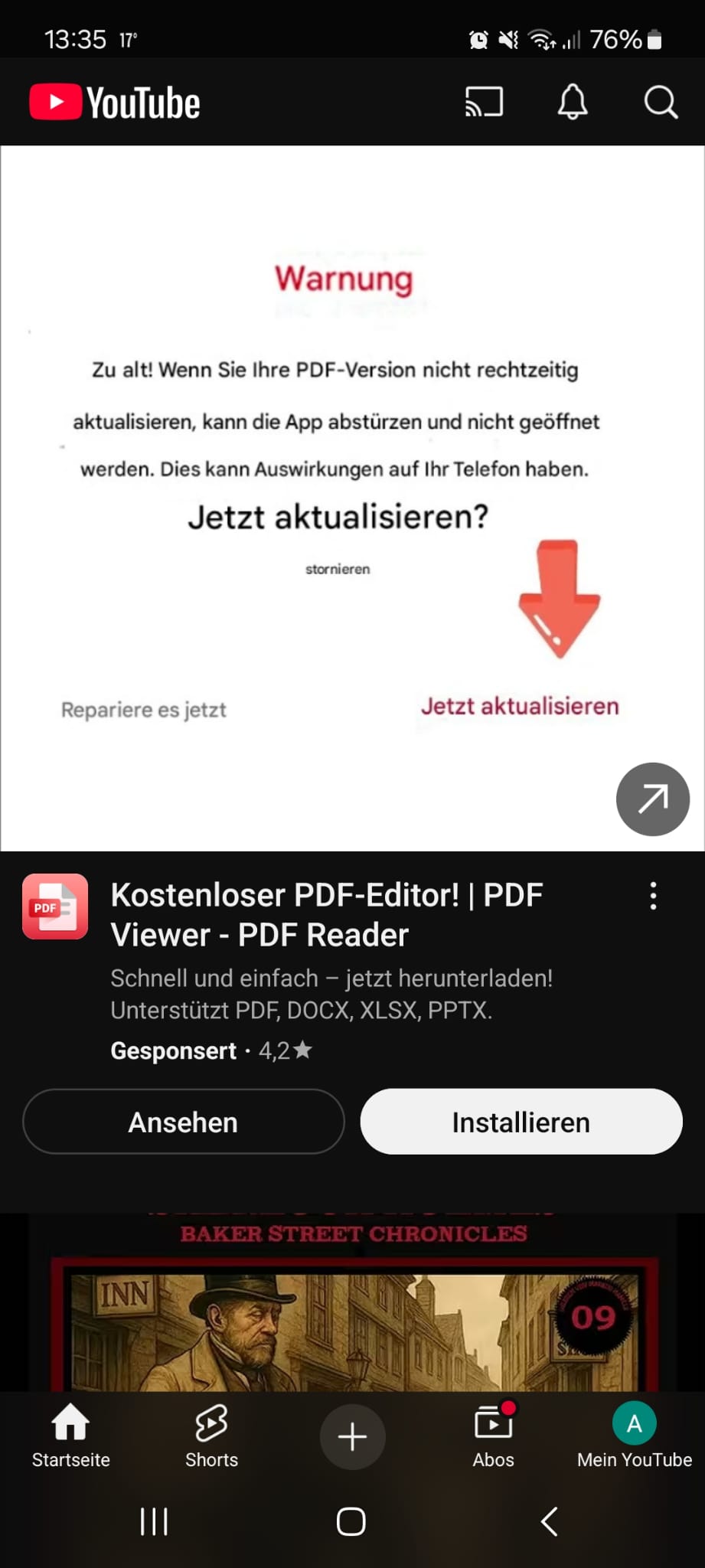 Sind diese Anzeigen in der YouTube App normal oder muss ich davon ausgehen dass ihr Smartphone mit Adware kompromittiert worden ist?
