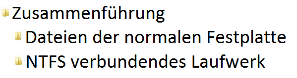 Dadurch habe ich doch einfach einen Schritt mehr wenn ich auf meinem Fernseher durch die Ordner wandere? Im Endeffekt muss ich mir doch trotzdem aussuchen ob ich nun die Dateien der Festplatte wähle, oder die Dateien der der verbundenen Festplatte. Zwar habe ich jetzt nur noch einen freigegebenen Ordner "Zusammenführung", aber leider hilft mir das nicht weiter. :/