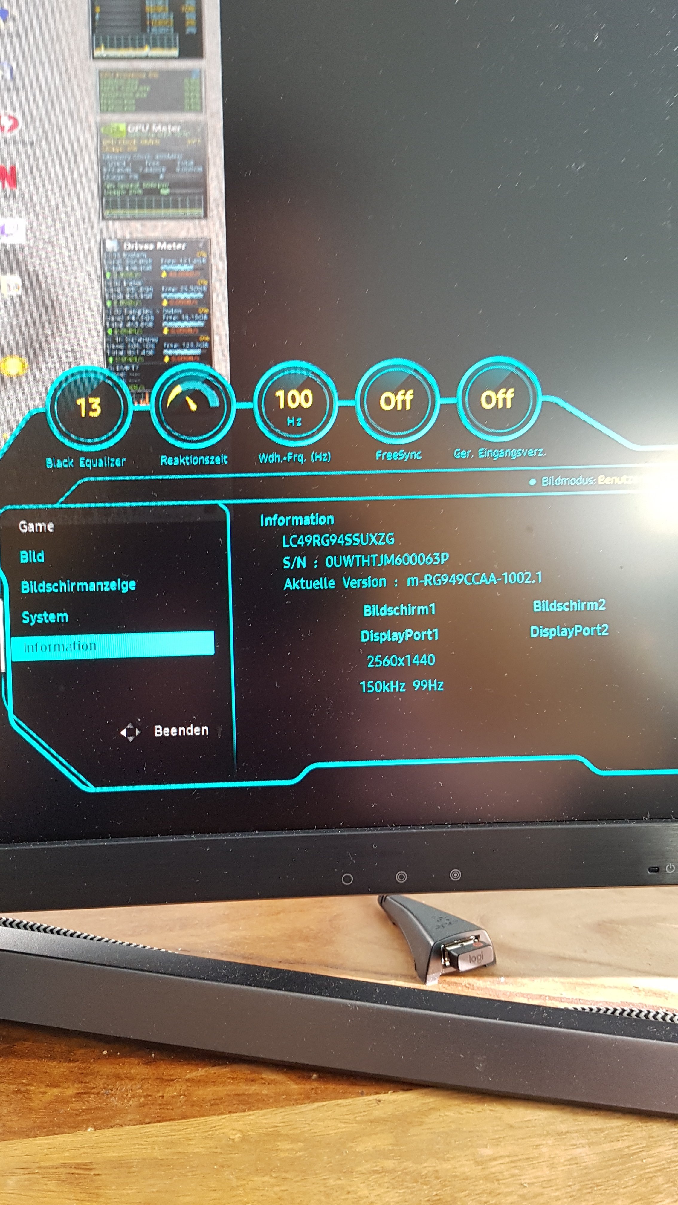 Auf dem Foto sind die FPS extrem niedrig mit mit der vollen Auflösung. Aber auch wenn ich Auflösung und Details runterdrehe, dass ich um die 60 FPS habe, steht im OSD trotzdem immer 100 Hz. Wie kann das sein?