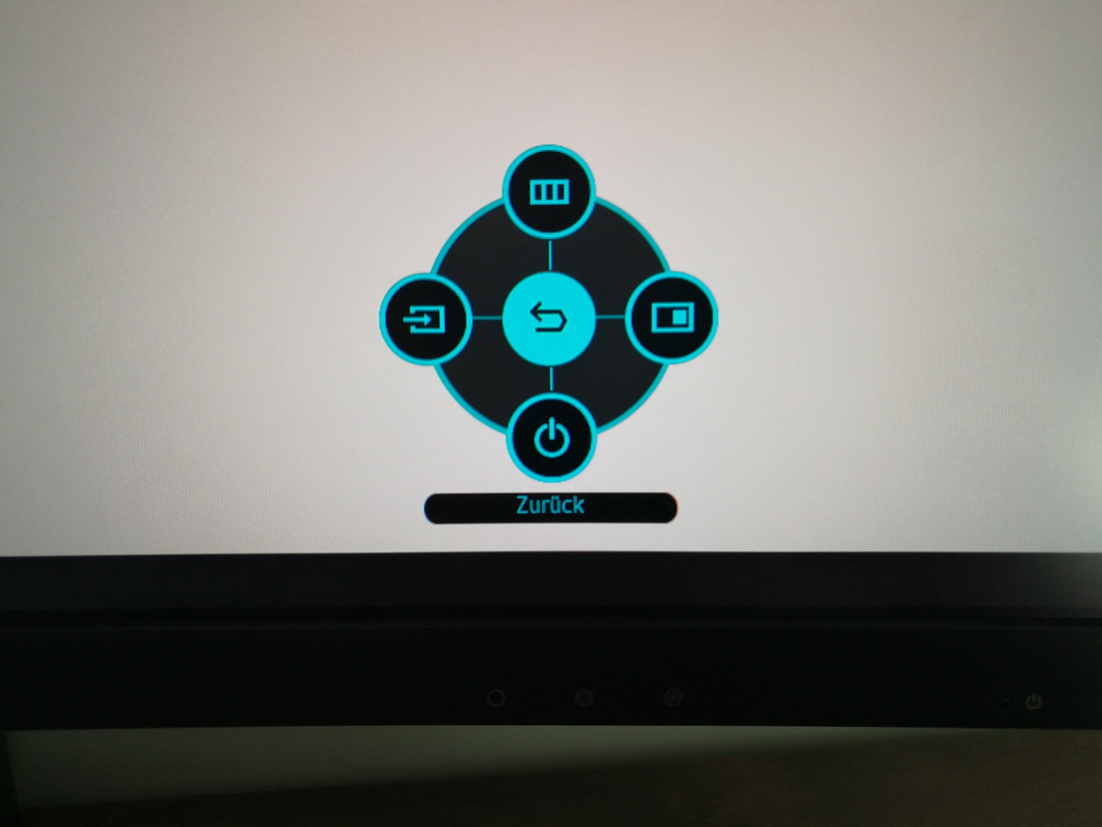 Das war allerdings kein all zu großes Problem: Über das Menü - zu erreichen durch einen kleinen Stick an der Unterseite des Monitors - sind auch direkt die möglichen Optionen zu finden. Mit einer Betätigung gelangt man zur Auswahl. Dort kann man zwischen dem eigentlichen Bildschirm-Menü, der Picture by Picture-Fuktion, der Quellen-Auswahl und Power Off auswählen. Dazu bewegt man den Stick, der übrigens auch der Power-Knopf ist, in die gewünschte Richtung, in der der gewünschter Eintrag zu finden ist.