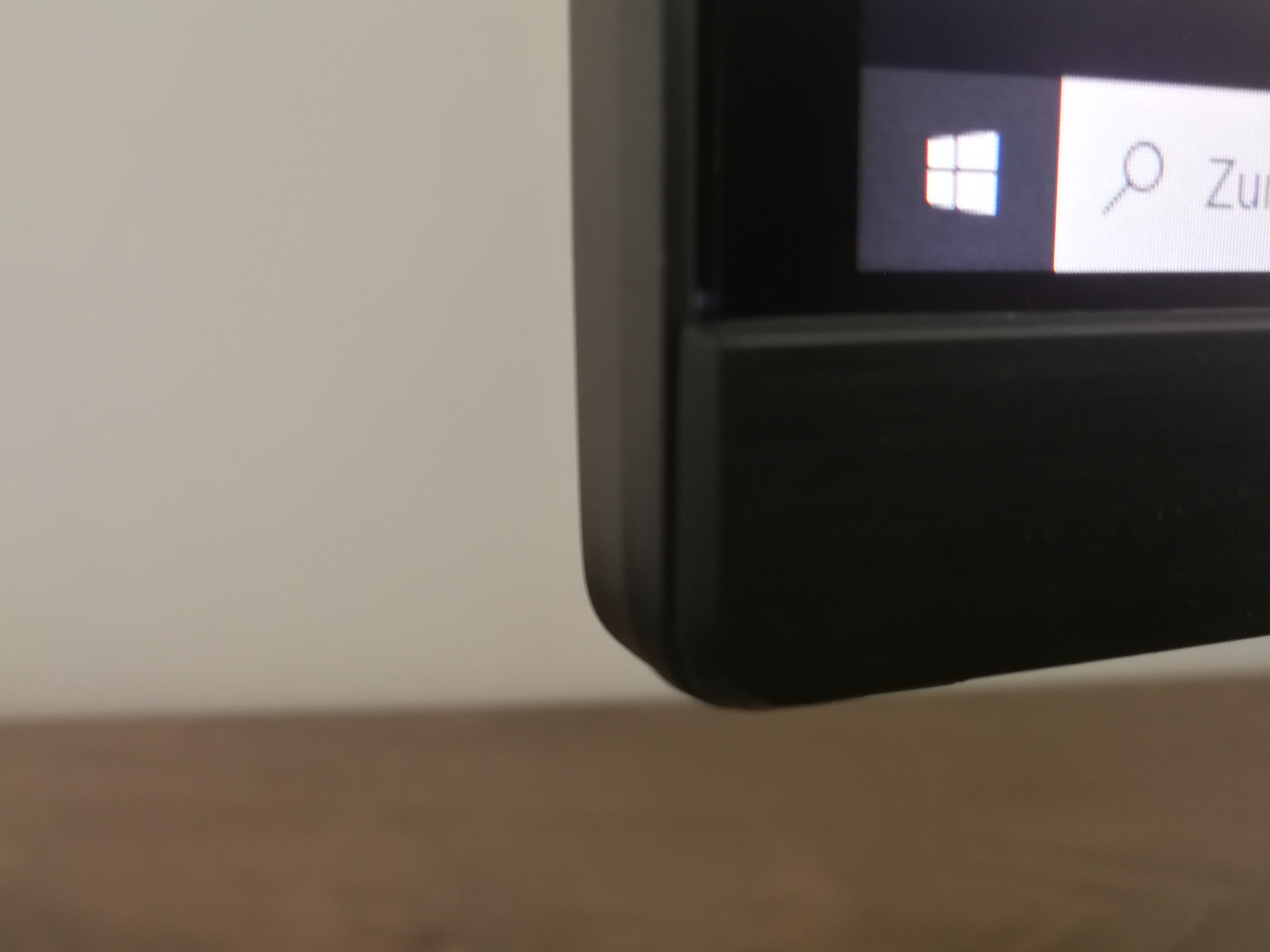 Die Verarbeitung sieht auf dem ersten Blick gelungen aus. Sieht man sich das Gerät etwas genauer an, sind hier und da doch Kleinigkeiten zu entdecken. Darunter fallen beispielweise leicht abweichende Spaltmaße an den Rändern, eine scharfe Kante am Standfuß und Klebereste am unteren Bildschirmrand. Ansonsten konnte ich optisch nichts weiter feststellen - auf das Optische bezogen.