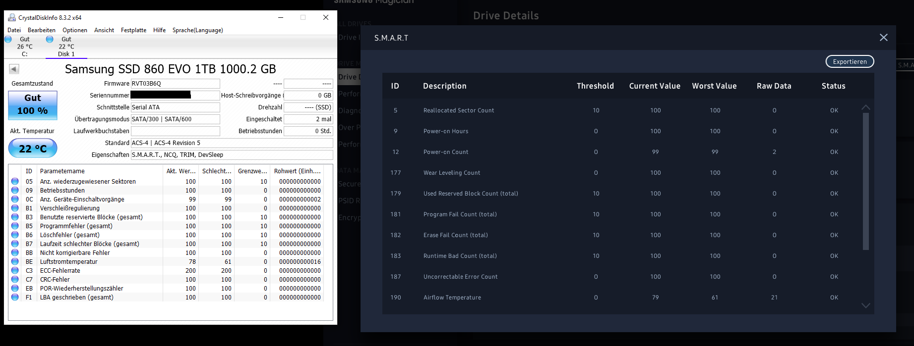 Hier haben ja sicher einige solche Samsung SSDs verbaut. Wenn da mal einer bei sich nachschauen könnte und mir Bescheid sagen könnte, ob da was nachgibt, wäre das echt nett.