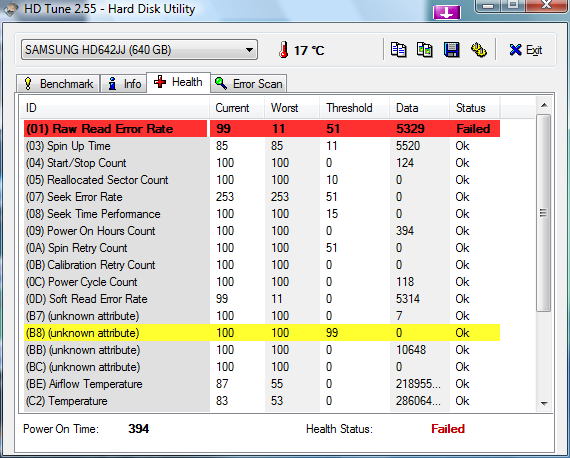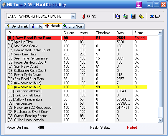 Nun meldet mir aber HDTune bei "Health" -> FAILED