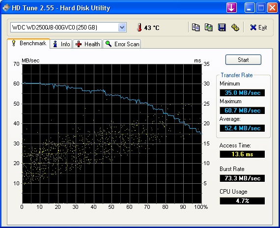 da diese so langsam ist, habe ich sie mit HD Tune getestet.