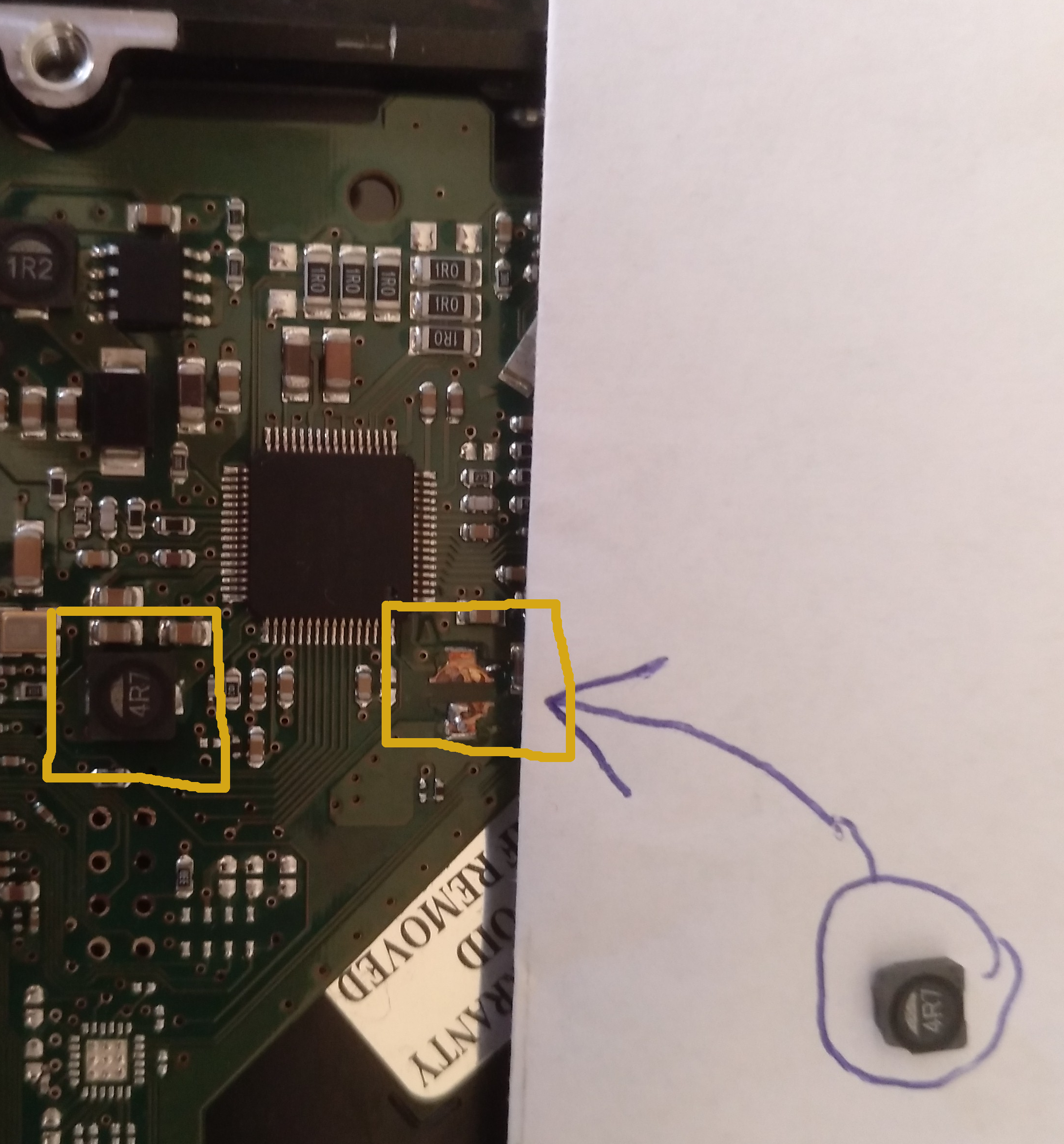 Demnach existiert der Schaltplan für diese HDD nicht mehr, da sie so alt ist (9 Jahre übrigens) . Man habe aber im Internet recherchiert und es müsste sich um eine "sehr übliche Spule" handeln.