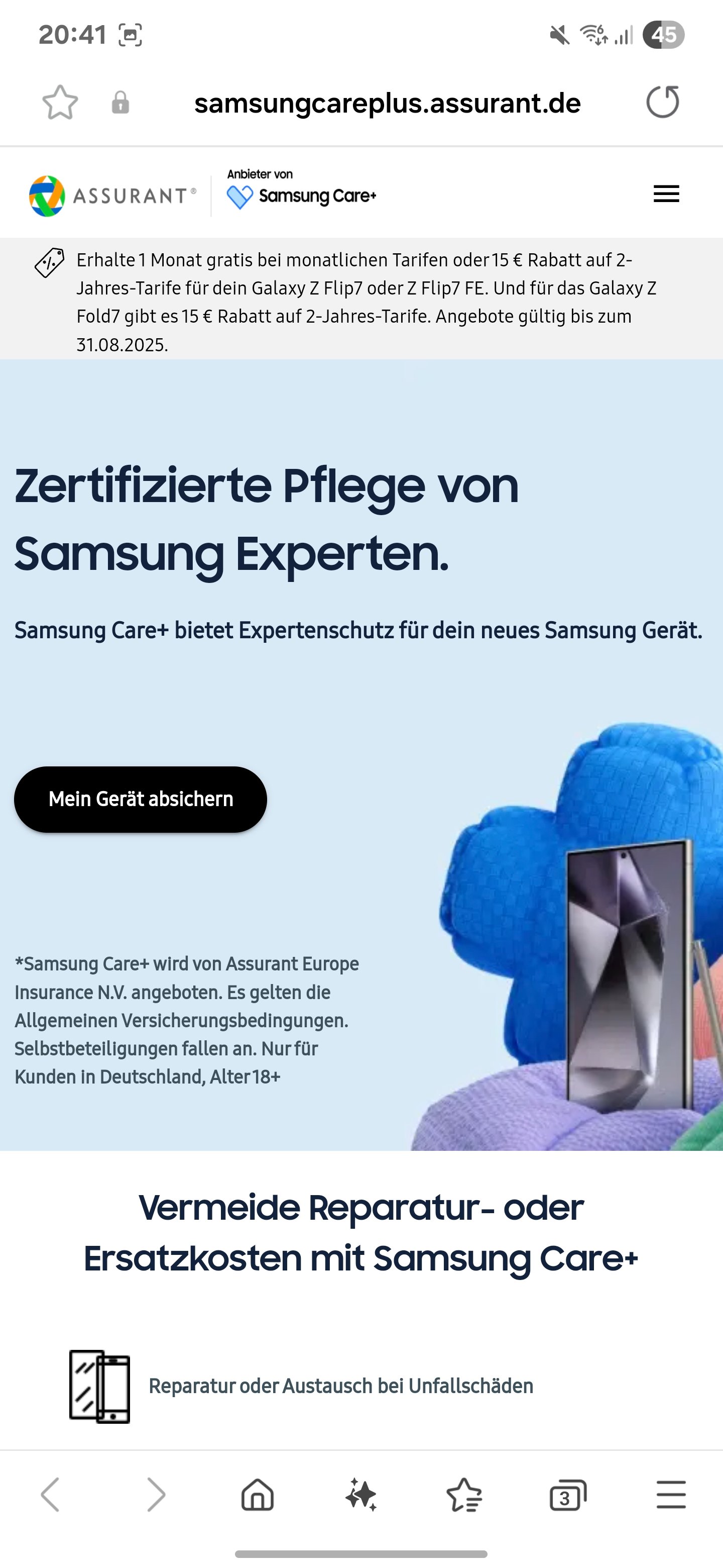 Ich habe noch nie Samsung Care+ gebucht, weil ich es bisher nicht für nötig hielt, aber beim Fold 7 habe ich ohne Versicherung schon etwas Angst.