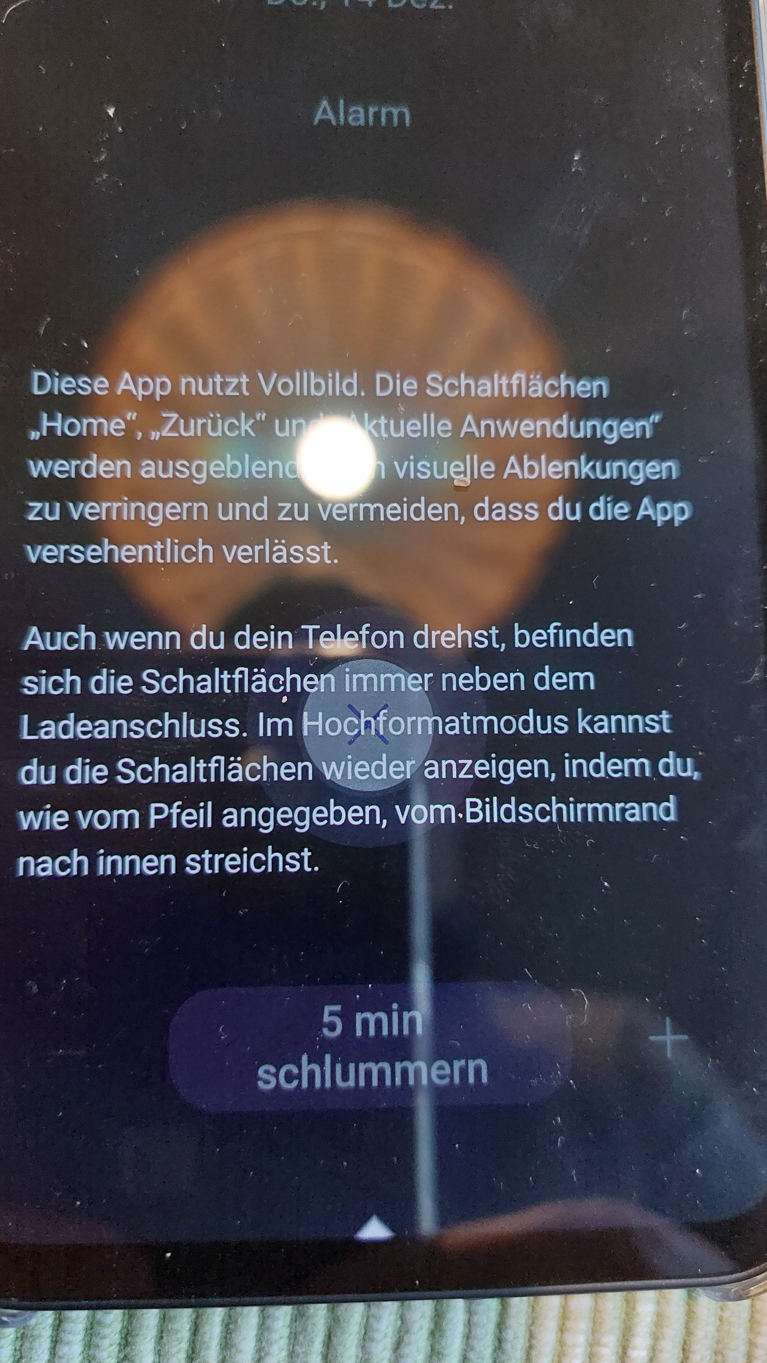 Bei aktiven Alarm Zeit mir die App an, sie wäre im Vollbildmodus.