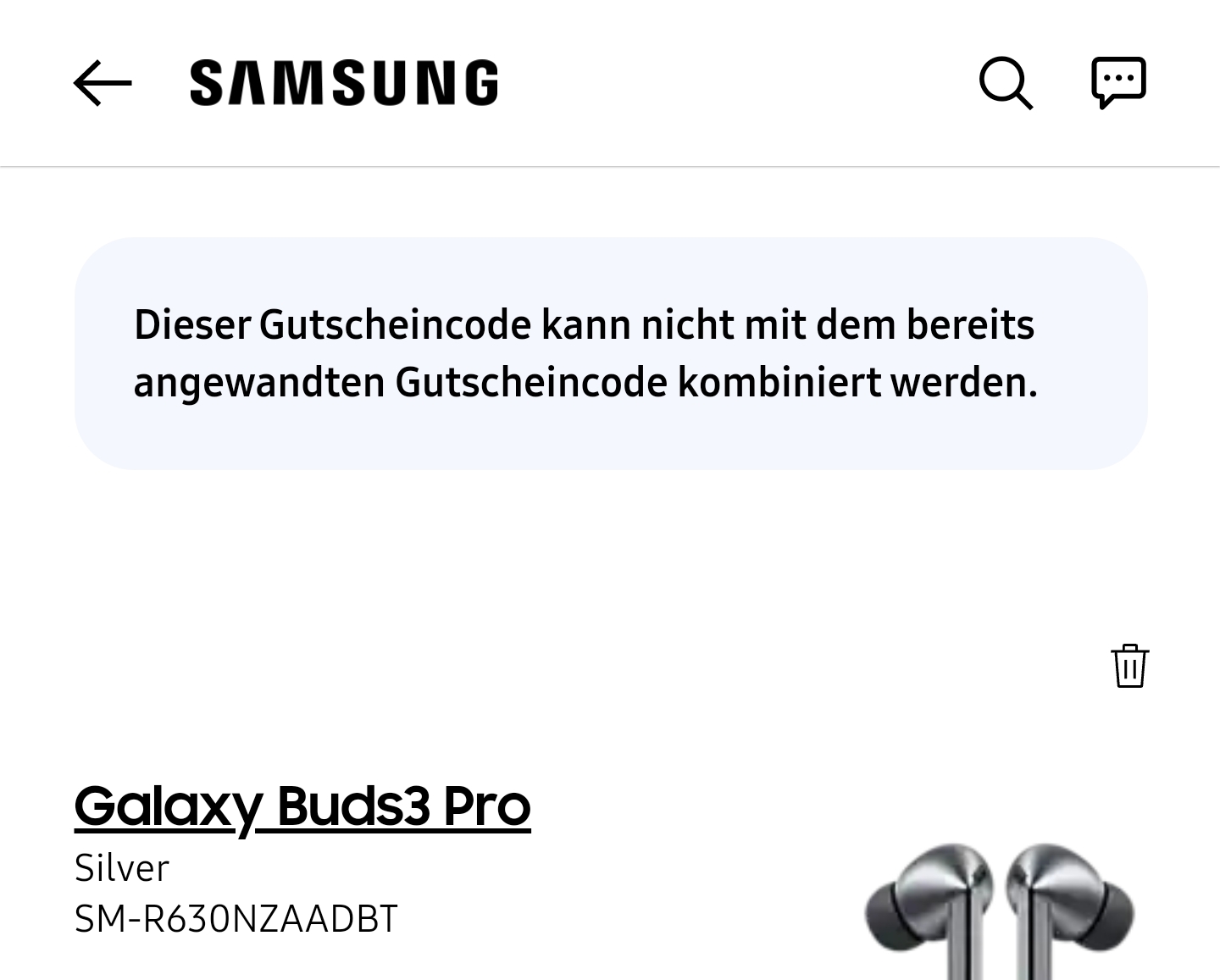 Ja, es gibt bei der Members App 2x 25%, einer davon (der ganz unten in der Liste) ist nur für die Kopfhörer.mikro. schrieb:Bei mir geht der 25%-Coupon nicht, wenn ich die Watch oder Buds in den Warenkorb packe ("Beachte, dass der Code nur für bestimmte Produkte und Vorraussetzungen gültig ist").