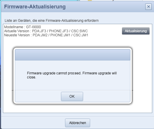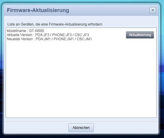 Danach einfach die Update Funktion von Kies benutzen und ihr habt JP6 Froyo.