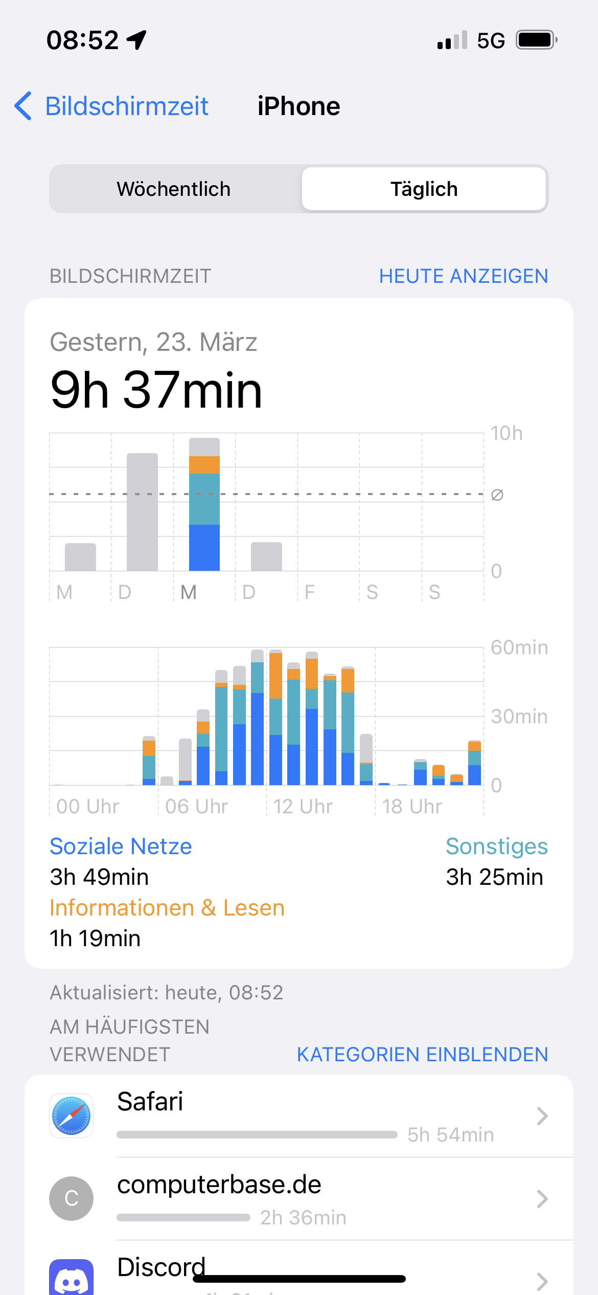 Der Fairness halber sei gesagt die Bildschirmzeit am Abend war im WLAN der Rest bei eher bescheidenem Mobilempfang.
