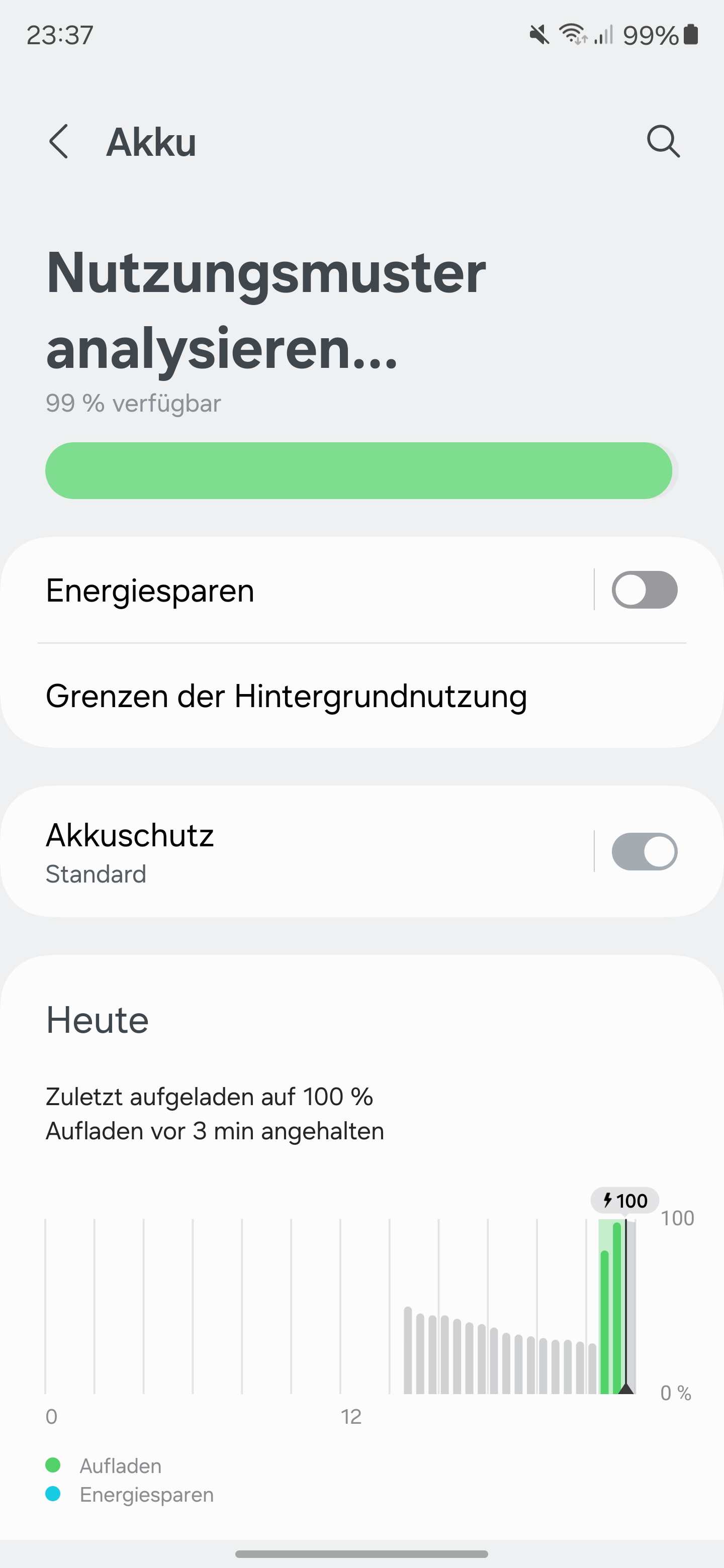 Die Einrichtung alleine hat jetzt 10% Akku gekostet. Das finde ich schon relativ viel. Im Vergleich dazu, benötigt z.B. das Huawei 13 nur 6% Akku für den Prozess.