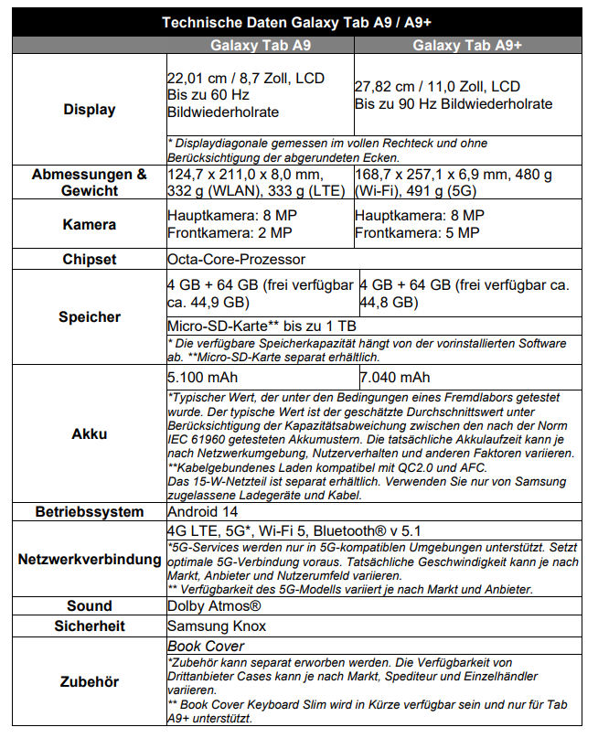 - Zur News: Samsung Galaxy Tab A9(+): Einsteiger-Tablets für den schmalen Geldbeutel