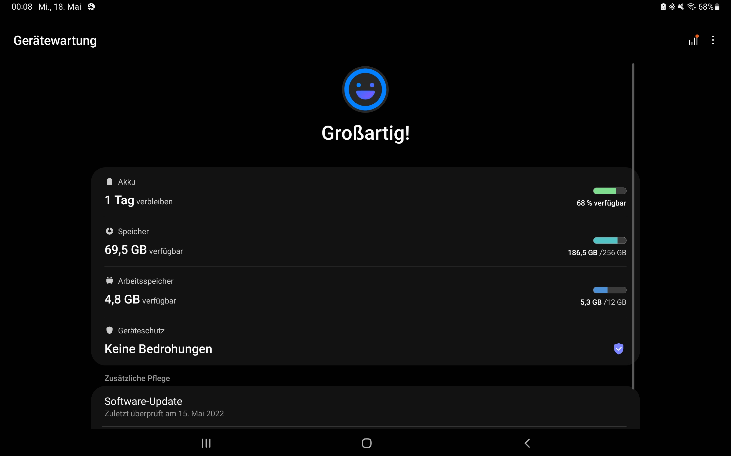 Ich besitze das Samsung Galaxy Tab S8 Ultra in der Konfiguration mit zwölf GB Ram und 256GB Flash.