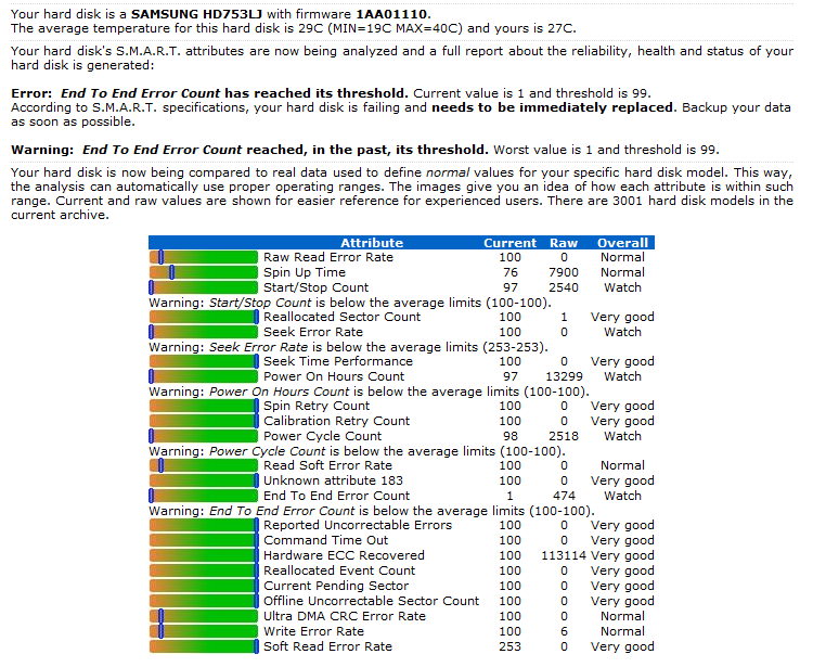 Meine am 1.7.2008 gekaufte HDD hat sich nun mit SMART Bad verabschiedet.