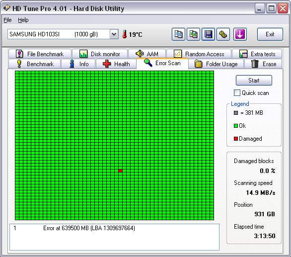 Schon im normalen Betrieb muß sehr oft die Fehlerkorrektur einspringen, was man an den Rohdaten-Lesefehlern (01: raw read error rate) sehen kann, sofern diese nicht unterdrückt werden.
