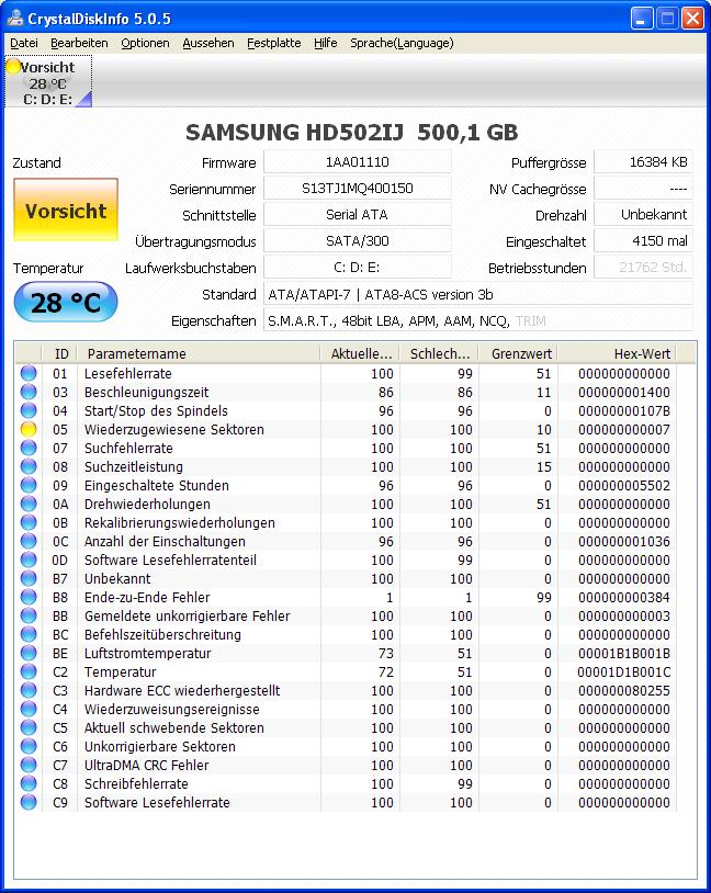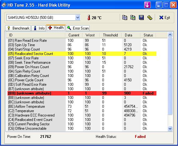 also mit HD tune mal Health Status abgelesen, und das kam bei heraus....