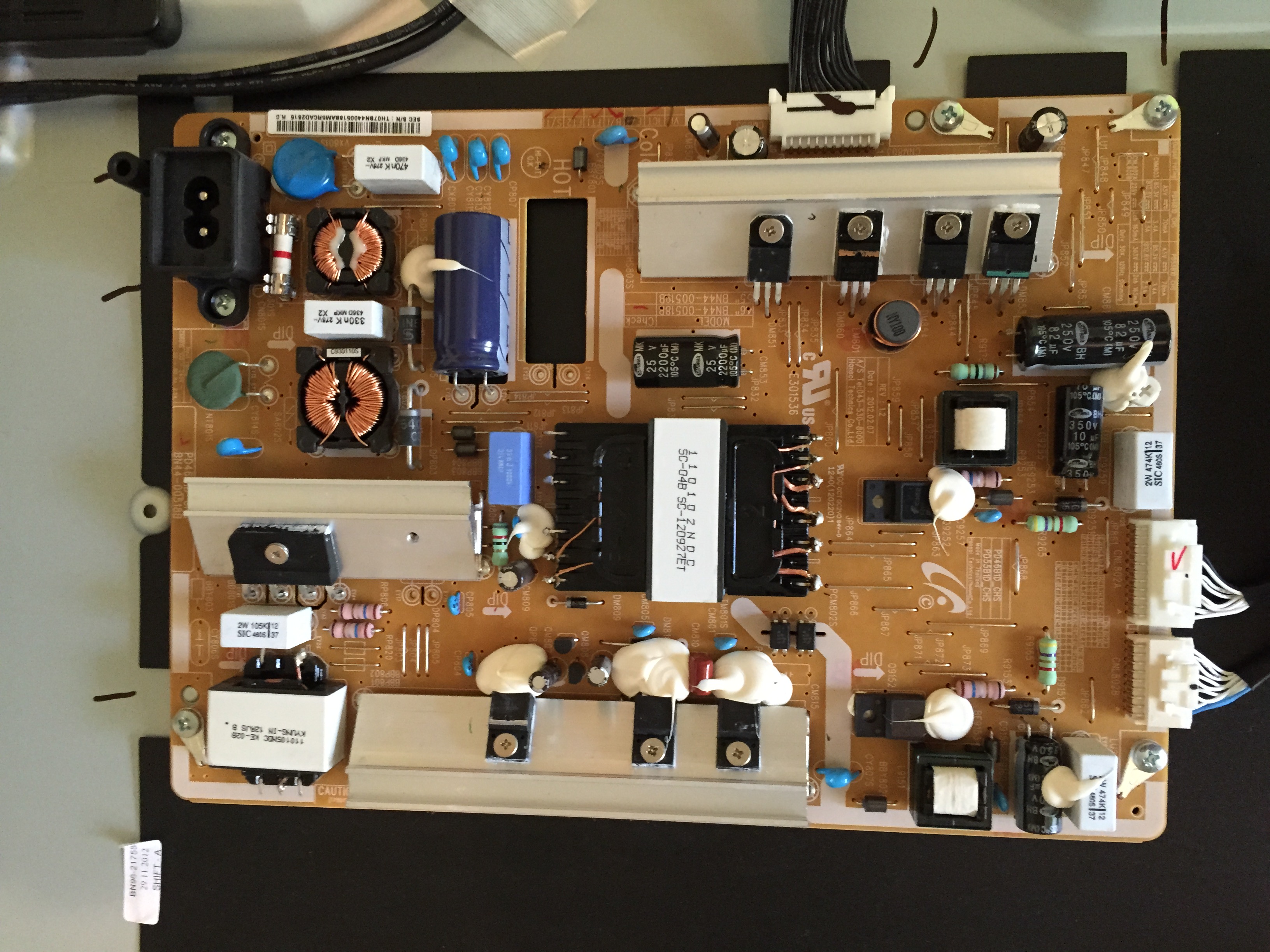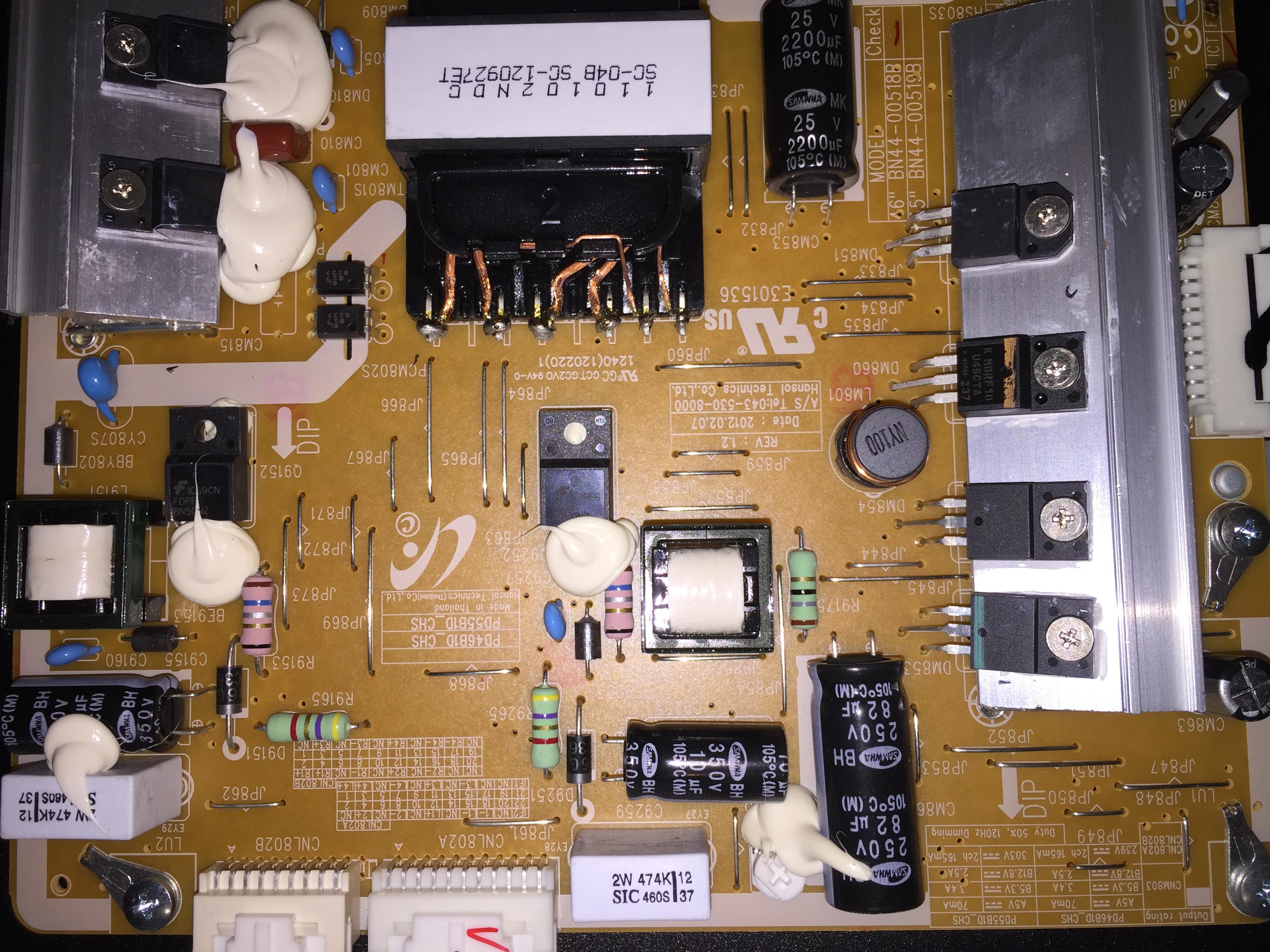 Also selbst aufgeschraubt und nachgeschaut, aber konnte keine gewölbten Kondensatoren oder so finden :/