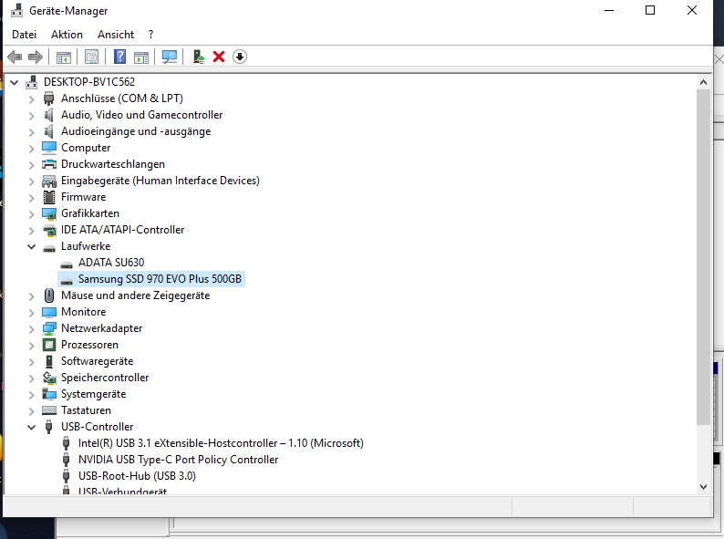 Die NVME wird aber nicht unter Laufwerke angezeigt.