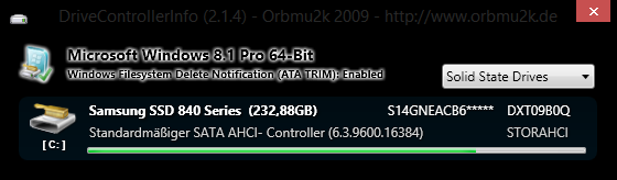 Eckdaten: Samsung 840 250GB, FW: DXT09B0Q, Windows 8.1 Pro.