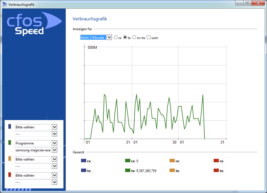 Samsungs Magician Software sendet immer wieder größere Brocken nach Hause (nutze seit Jahren CFOS zur Protokollierung meines Traffics). Bisher hatte es mich zwar verwundert, ich habe es mir aber nie im Detail angesehen. Doch jetzt der Schock: in den letzten 3 Monaten verursachte die Software fast 10 GByte Upload-Traffic. Mit täglichen Wechseln zwischen 25 und 250 MB.