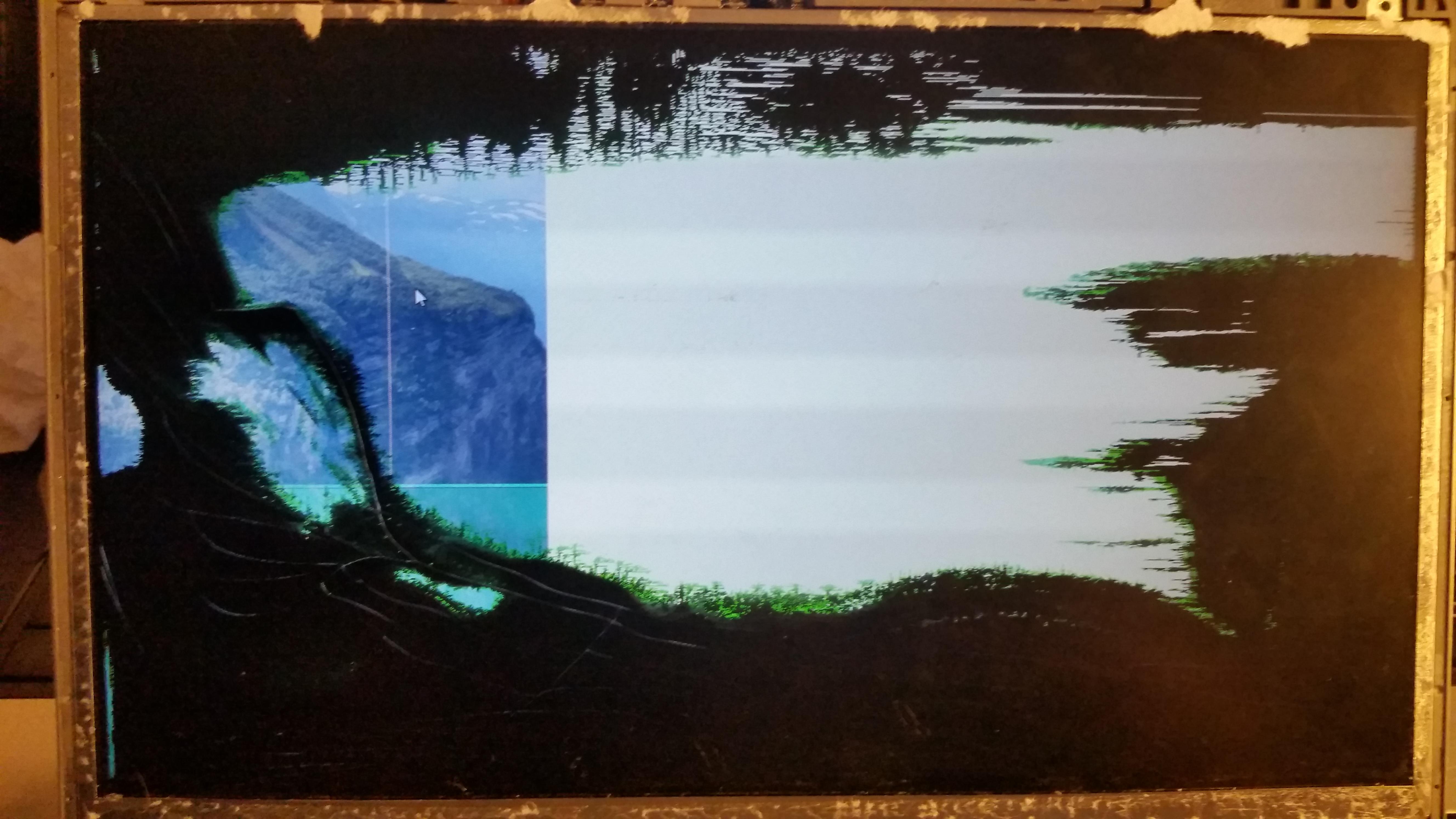 Das Bild mit den kuriosen Farben ist mit dem neu eingebauten Display, das vernünftige Bild auf dem extern angeschlossenen Monitor.