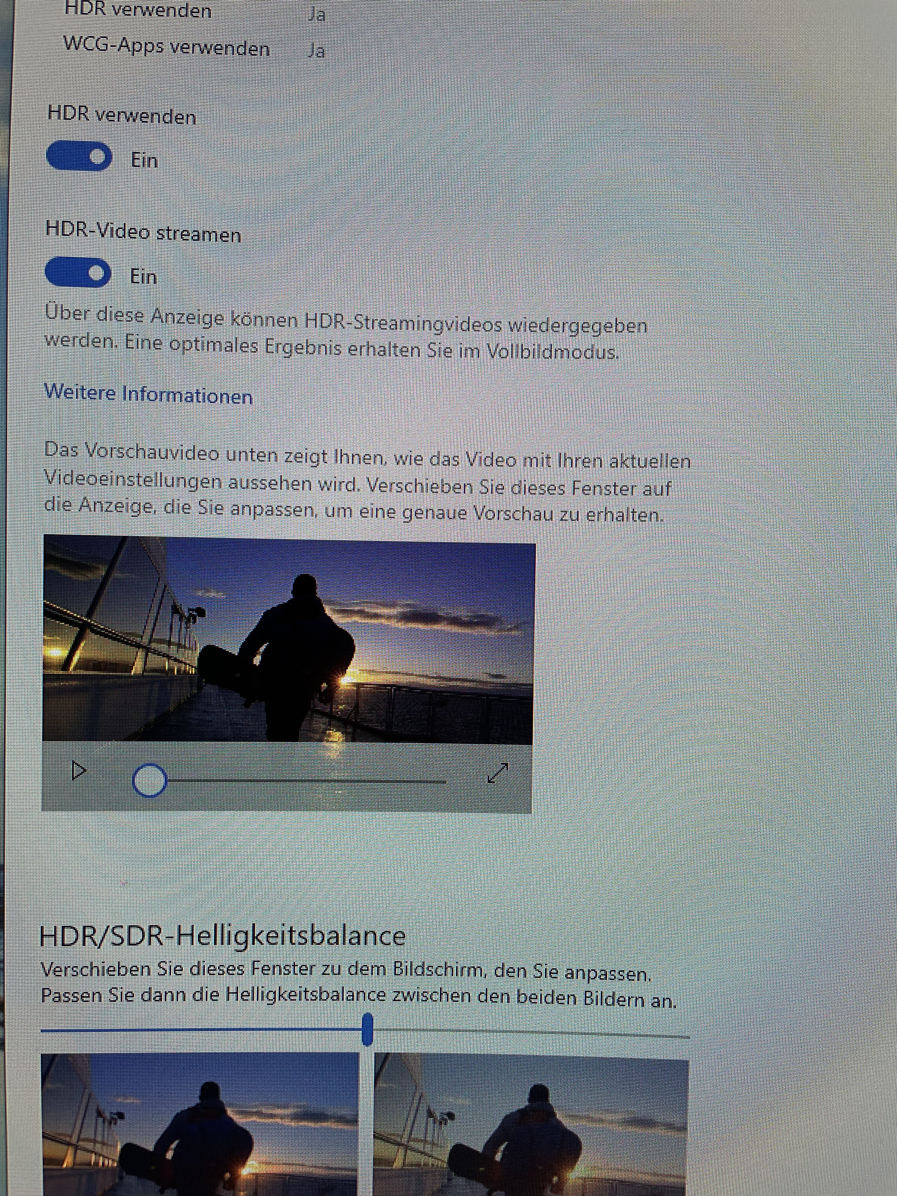 Hi, habe mal in Windows paar handybilder gemacht. Das sollte so bei dir identisch aussehen?! Die HDR Helligkeit musst du wie gesagt selbst in Windows einstellen. Ansonsten noch die Einstellungen vom Monitor.